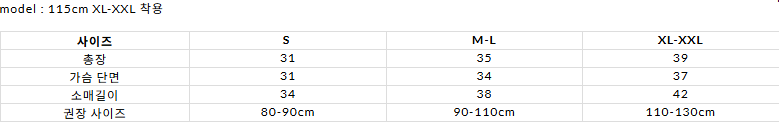 S碼(85-100公分)/ M碼(100-115公分)/ L碼(115-130公分)